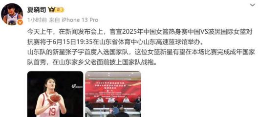 “今天上午,在新聞發(fā)布會上,官宣2025年中國女籃熱身賽中國VS波黑國際女籃對抗賽將于6月15日19:35在山東省體育中心山東高速籃球館舉辦。