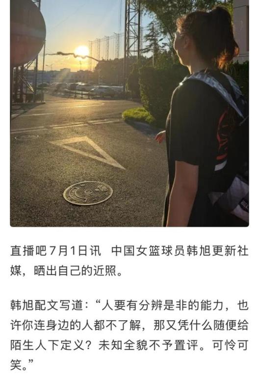 2025年上半年已然結束,悄然進入了下半年,這不?中國女籃中鋒韓旭在社交媒體上更新了動態(tài),并且曬出了自己的近照。