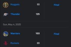 季后賽至今,一共出現(xiàn)三次搶七,分別是雷霆125-93掘金、勇士103-89火箭、掘金120-101快船。