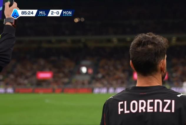 意甲末輪主場(chǎng)迎戰(zhàn)蒙扎的比賽中,米蘭后衛(wèi)弗洛倫齊在第86分鐘替補(bǔ)出場(chǎng)。