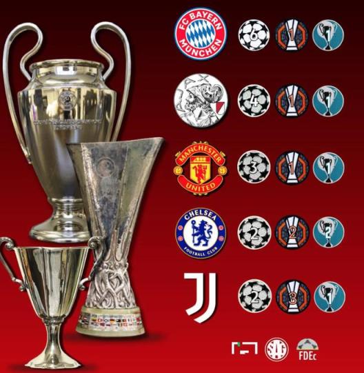 尤文圖斯在1985年就完成三大杯滿貫,是第一支實(shí)現(xiàn)此壯舉的球隊(duì),阿賈克斯與拜仁在上世紀(jì)90年代相繼完成,切爾西在2012年完成,曼聯(lián)則是2017年。