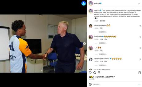 恩德里克更新社交媒體曬照發(fā)文告別安切洛蒂。