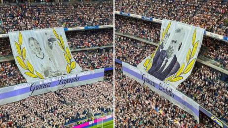 北京時間5月24日,皇馬將在主場迎來西甲的最后一輪比賽,對手是皇家社會。在比賽開始前,皇家馬德里球迷打出了安切洛蒂和莫德里奇的TIFO,送別兩位俱樂部的傳奇。