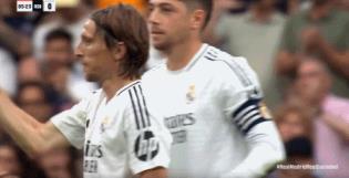 本賽季西甲收官戰(zhàn),皇馬主場(chǎng)迎戰(zhàn)皇家社會(huì),39歲的莫德里奇佩戴隊(duì)長(zhǎng)袖標(biāo)首發(fā)出場(chǎng)。比賽第86分鐘,魔笛被換下,完成了伯納烏主場(chǎng)最后一戰(zhàn)。