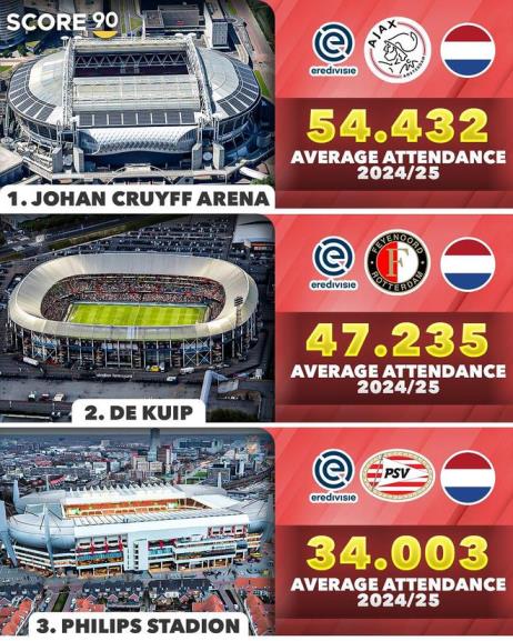 阿賈克斯(54432)、費(fèi)耶諾德(47235)、埃因霍溫(34003)