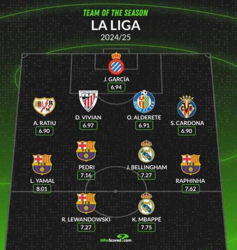 下一篇:Whoscored評選本賽季西甲最佳陣容:姆巴佩領(lǐng)銜,亞馬爾與拉菲尼亞入選