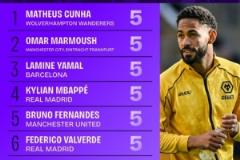 1-庫(kù)尼亞(狼隊(duì)):5球