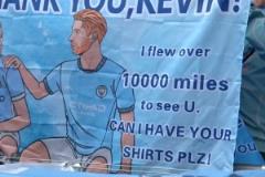 該名球迷手持德布勞內(nèi)海報,并寫道:“謝謝你,德布勞內(nèi)!我跨越萬里只為來見你,請問我能得到你的球衣嗎?”