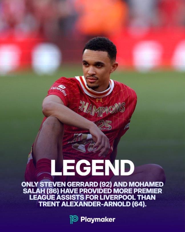 北京時間5月30日,足球數(shù)據(jù)網(wǎng)站playmakerstats發(fā)布了利物浦在英超聯(lián)賽助攻榜前五,其中杰拉德位居榜首,阿諾德進入榜單。